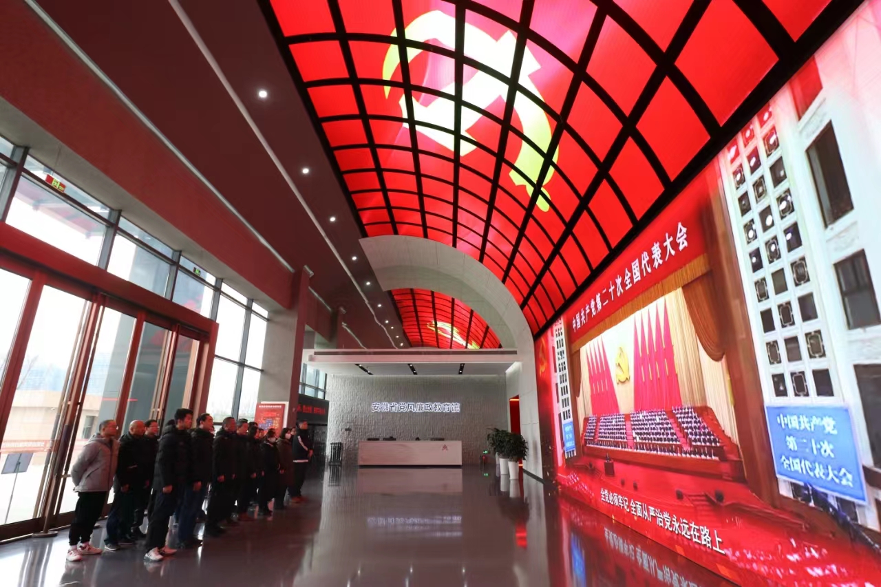 活動中,全體黨員面對黨旗莊嚴宣誓,重溫入黨誓詞。隨后,在講解員的引導下,大家分別參觀了以“永遠在路上”為主題的“紀律立黨 從嚴治黨”、“廉潤江淮 清風揚帆”、“以案為鑒 警鐘長鳴”、“不忘初心 永葆清廉”四大展廳,通過展板、圖片、視頻、雕塑、互動查詢、場景還原、體驗空間等多種形式,全方位回顧中國共產黨篳路藍縷的百年紀律建設史,深刻感受了安徽省委全面從嚴治黨、推進黨風廉政建設和反腐敗斗爭成果。詳實鮮活的案例給大家帶來了強烈的思想沖擊和心靈震撼,同志們深刻感受到了黨風廉政建設的重要性和必要性。