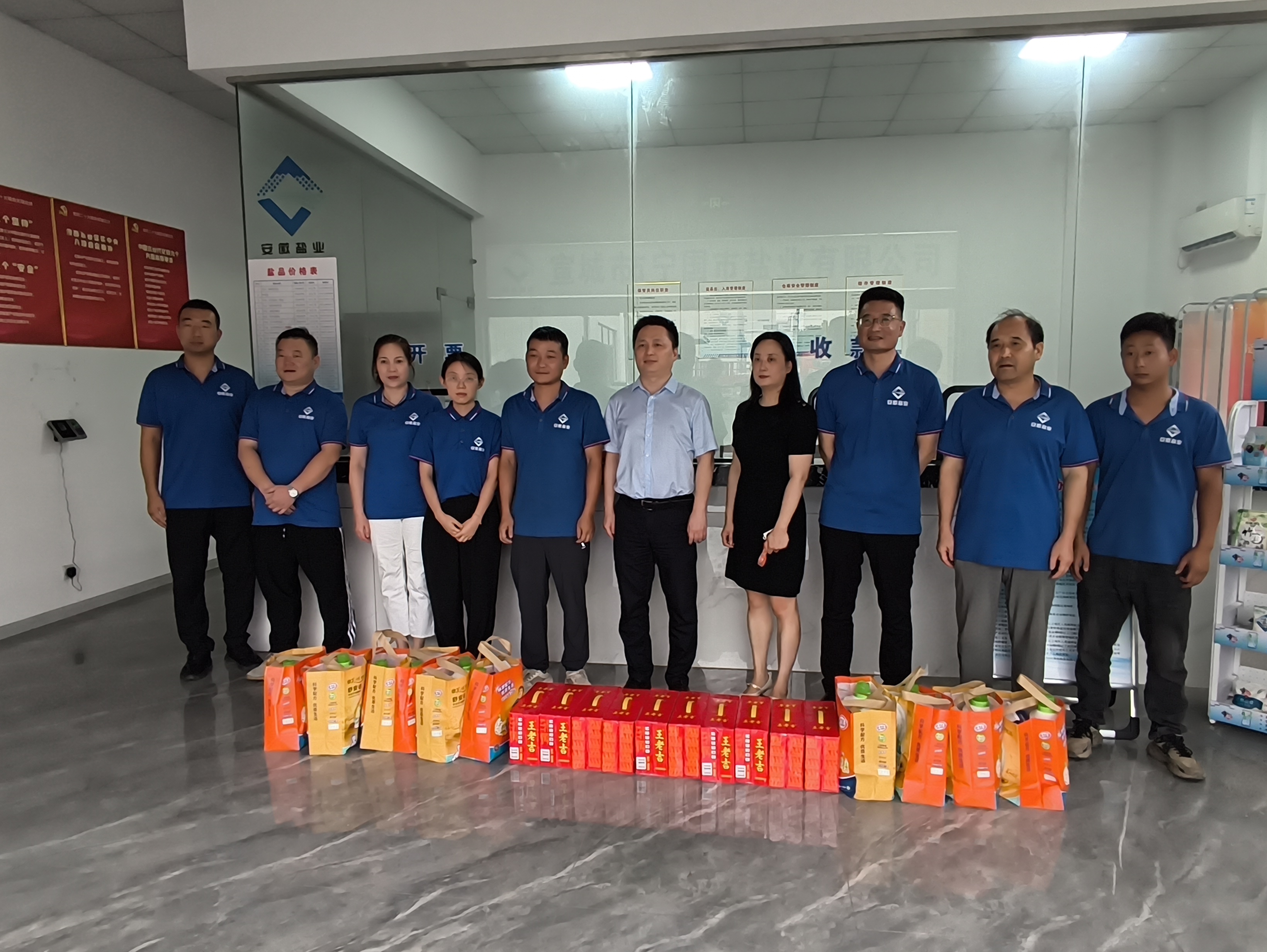 考察期間,繆磊還到寧國鹽業公司開展調研慰問,實地查看了寧國市鹽業公司儲備鹽倉庫,詳細詢問了生產經營和轉型發展等方面的情況,并代表集團工會為鹽業公司一線員工送上防暑降溫清涼包,叮囑大家要做好安全生產和防暑降溫工作。