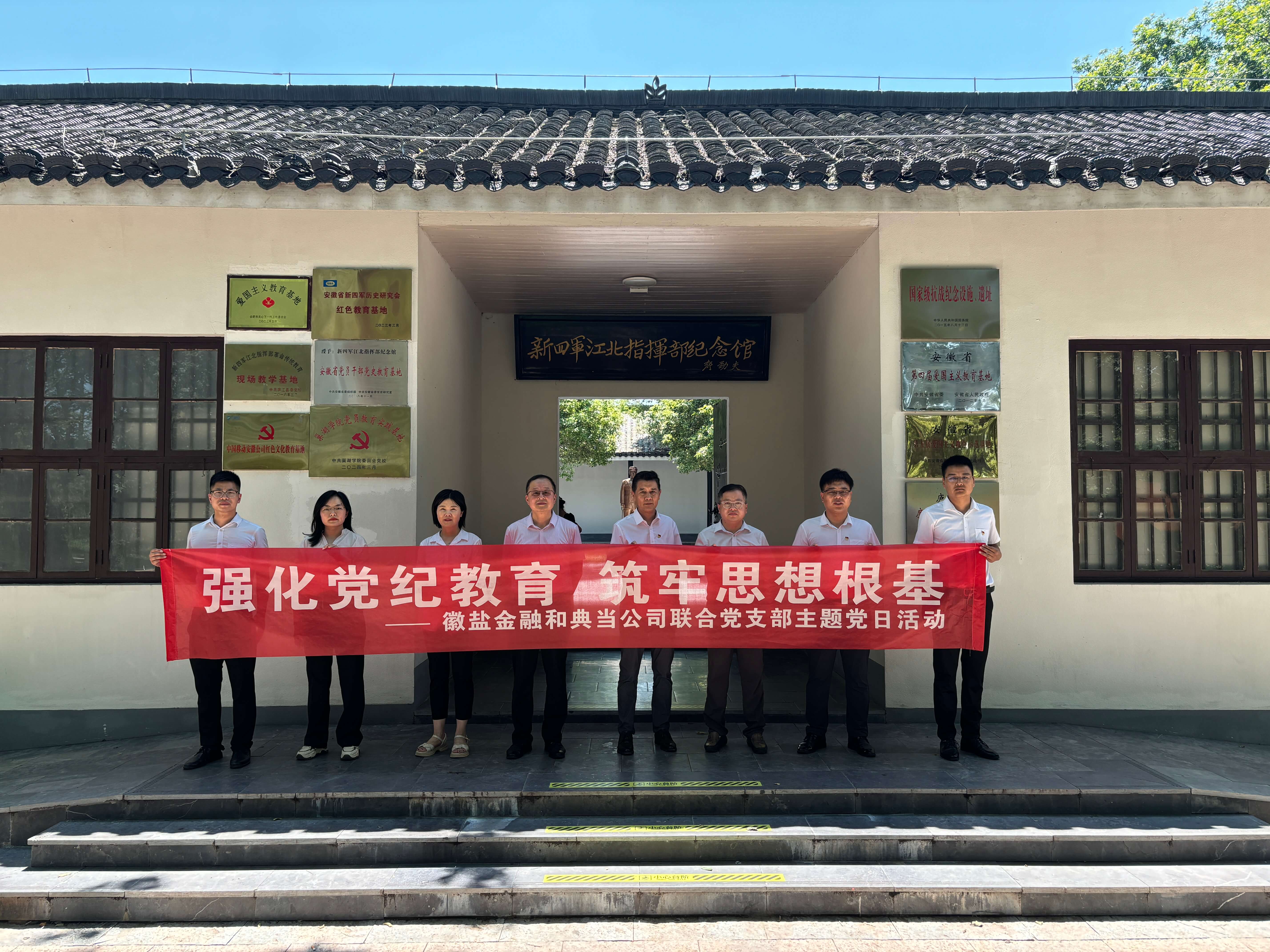 為推進黨紀學習教育走深走實,引導黨員做到學紀、知紀、明紀、守紀,切實筑牢知敬畏、存戒懼、守底線的思想防線,7月開5日,金融典當公司聯合黨支部組織全體黨員赴新四軍江北指揮部紀念館,開展“強化黨紀教育 筑牢思想根基”主題黨日活動。