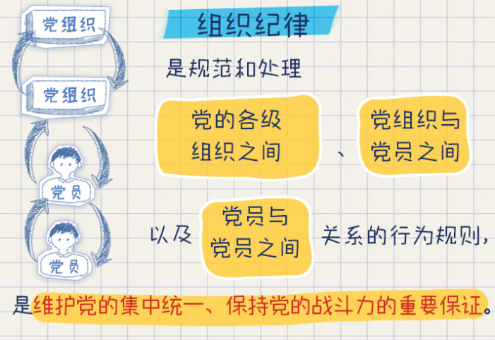 組織紀(jì)律著眼于黨員和黨組織之間的關(guān)系,規(guī)范的是黨組織和黨員遵守和維護(hù)黨在組織上團(tuán)結(jié)統(tǒng)一的行為。一個(gè)人一旦入了黨,就要有強(qiáng)烈的組織意識(shí)和組織觀念,就必須嚴(yán)格遵守組織紀(jì)律。