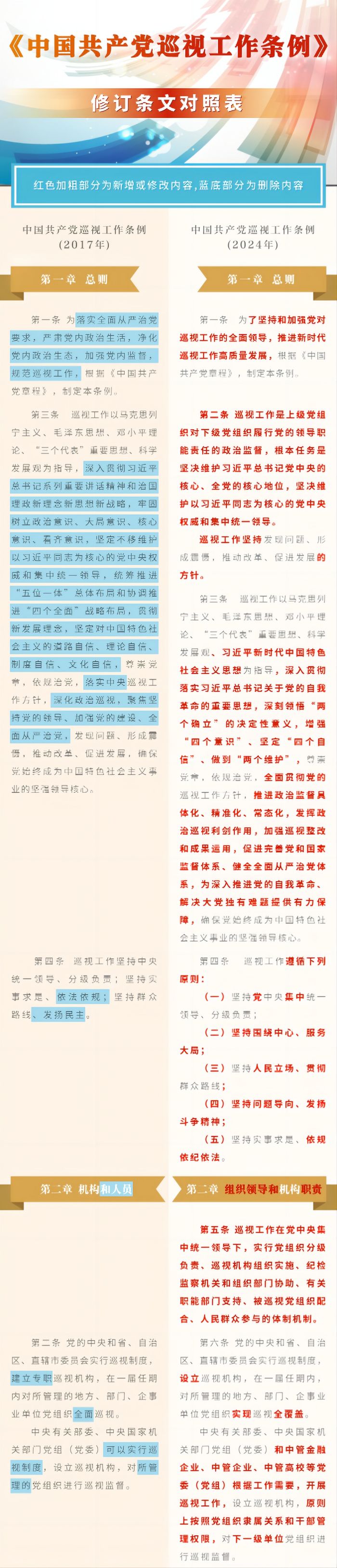 《中國共產(chǎn)黨巡視工作條例》修訂條文對照表