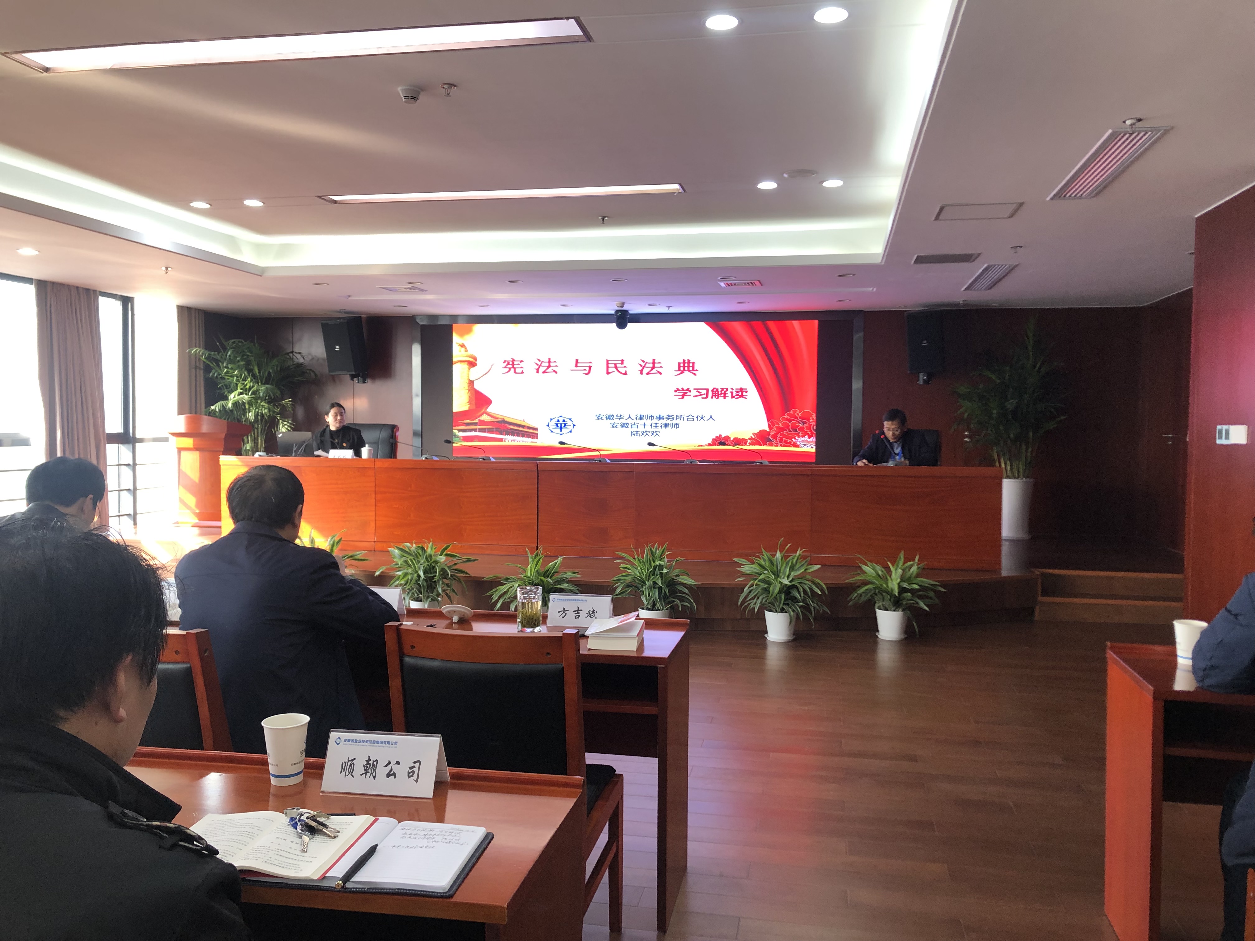 會上,安徽華人律師事務所合伙人陸歡歡律師作《憲法與民法典學習解讀》專題講座,主要介紹了憲法的發(fā)展歷程、憲法的結(jié)構(gòu)和主要內(nèi)容以及婚姻、繼承相關(guān)的法律知識。