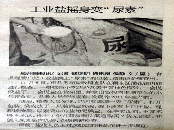 隨后,稽查人員發現,店內有滿滿一袋“尿素”。打開包裝,袋內放了一只裝滿鹽的碗,碗下還有上百斤鹽。經現場檢測,尿素袋中的鹽為無碘鹽。在事實面前,王某不得不承認,他于3個月前從非法渠道購買2袋無碘鹽,并倒入尿素袋內偽裝,企圖逃避檢查。