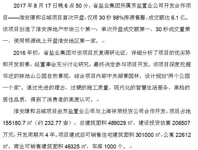 江蘇省鹽業集團合作開發項目開盤30秒銷售6.1億元