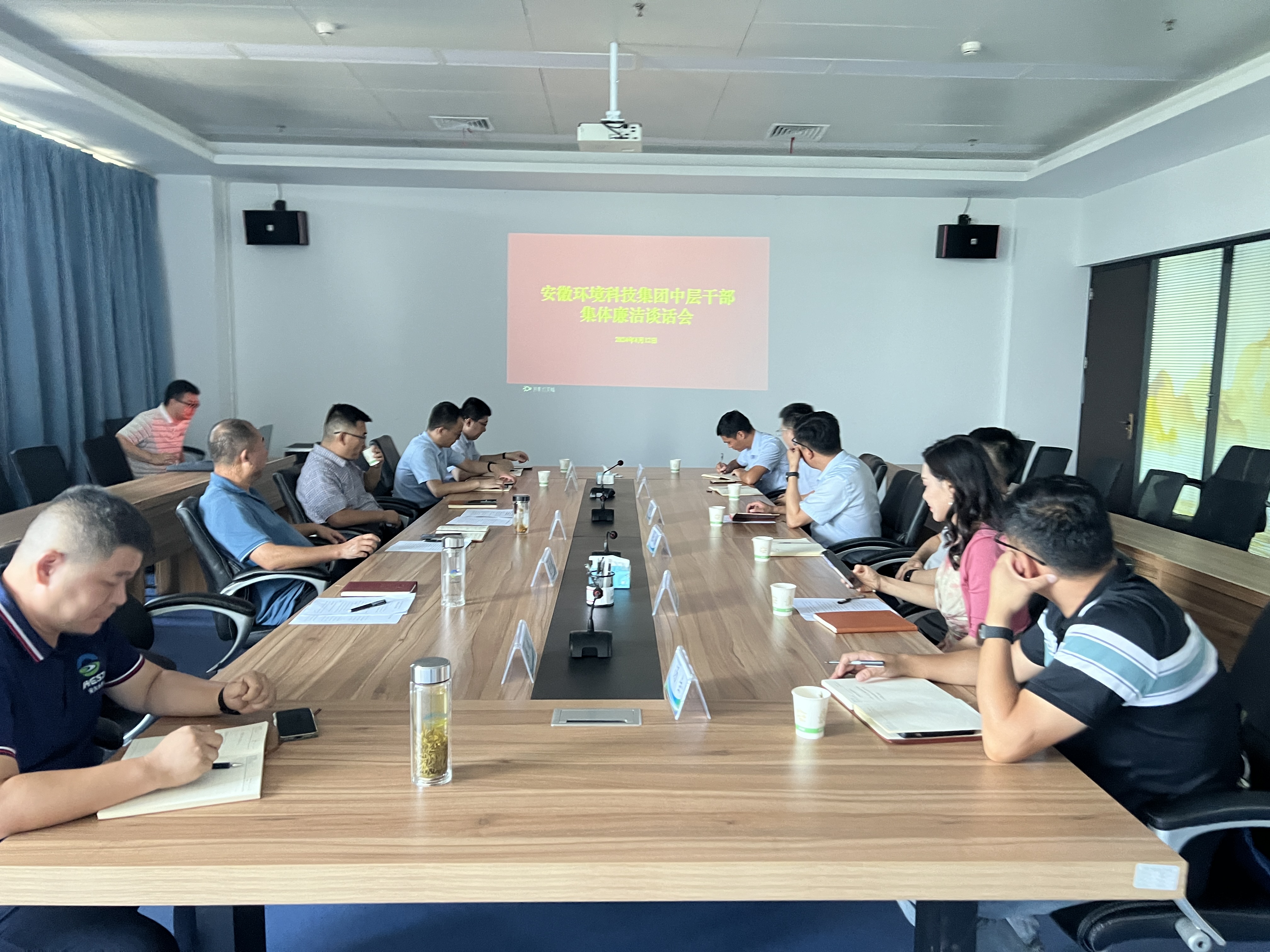 8月12日,環境科技集團黨委副書記韓冰對2024年1月以來招聘、調整、進一步使用、提拔的新任中層管理人員開展集體廉潔談話,環境科技集團副總經理朱濤主持會議。