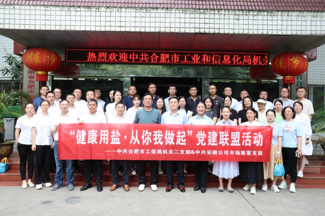 830日上午,合肥市工業和信息化局機關二支部、安徽省通信產業服務有限公司市場集客支部赴合肥市鹽業公司,開展“健康用鹽 從你我做起”共建主題黨日活動。市工信局駐局紀檢監察組組長、黨組成員李玲,市工信局產業政策處處長周玉玲,安徽省通信產業服務有限公司市場集客支部書記陳猛,合肥市公司黨委書記、董事長張鷹,黨委委員、副經理張革,以及共建單位黨員同志參加活動。